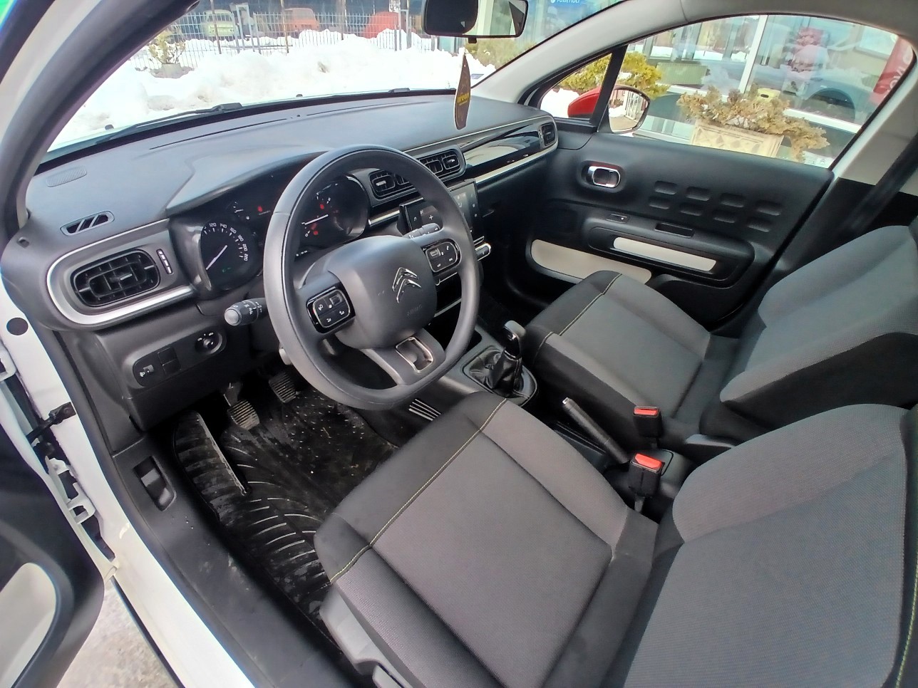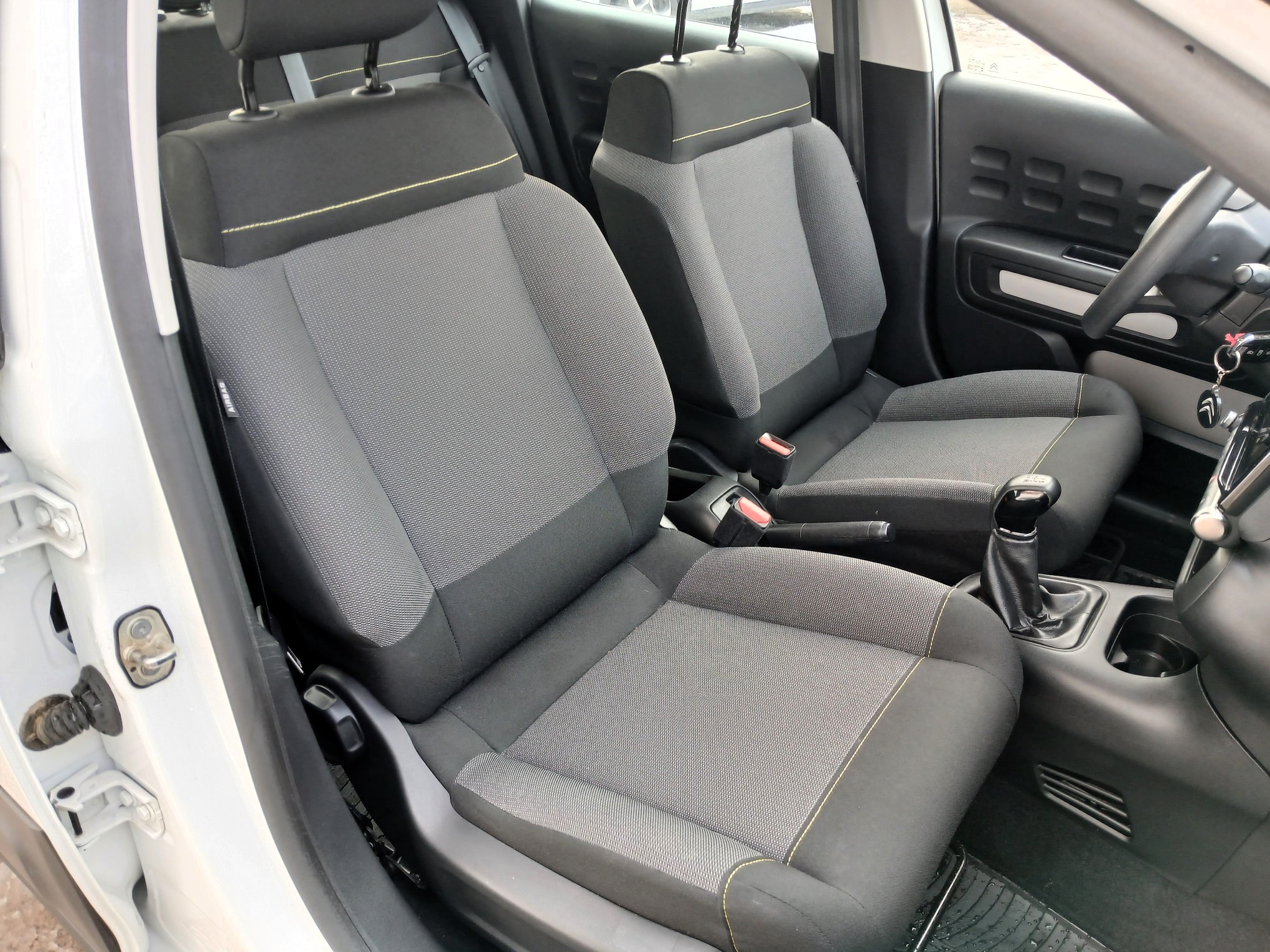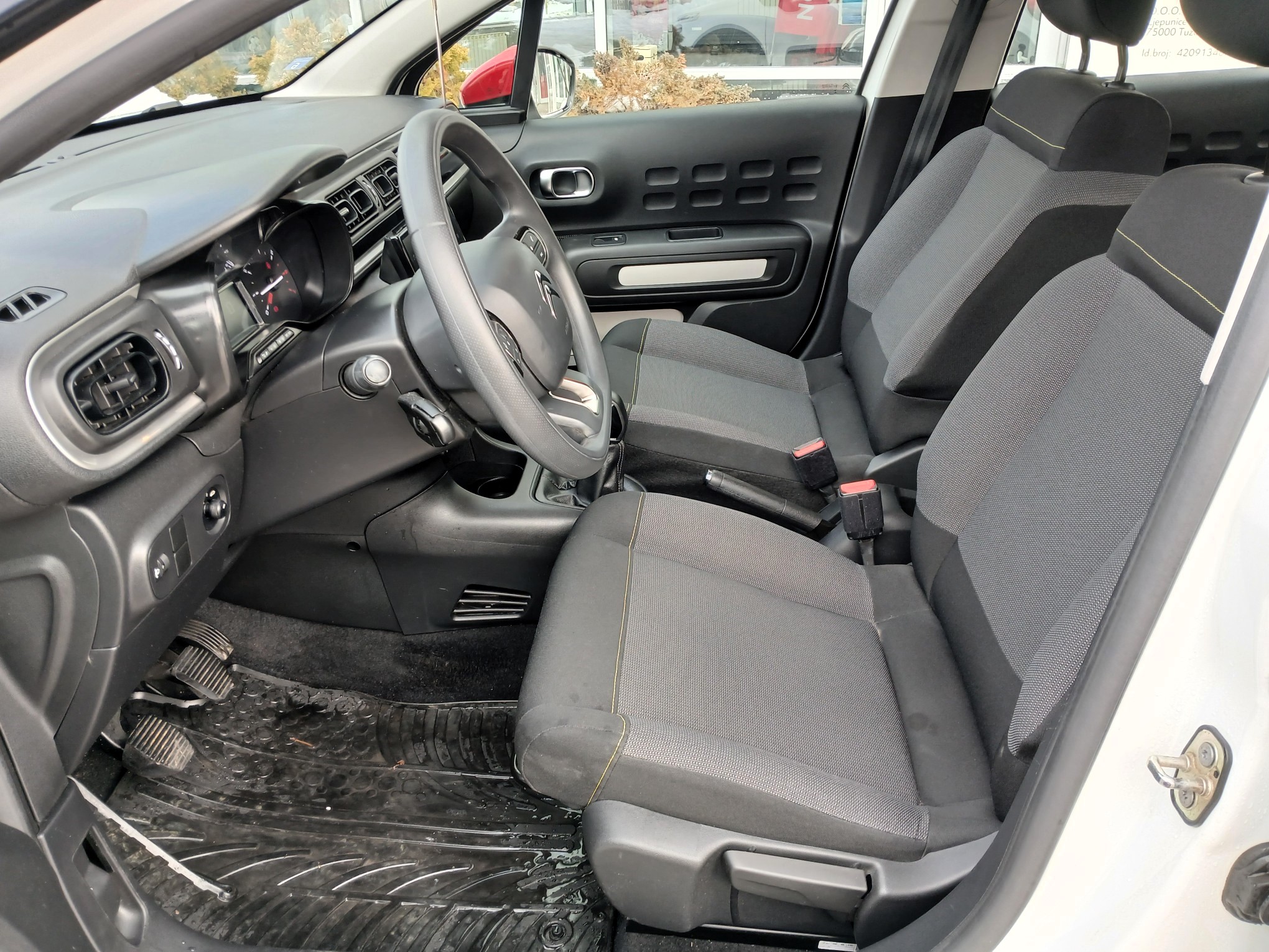 - Unutrašnjost od tkanine u sivoj boji Mica sa zeleno žutima šavovima, Armaturna ploca sa umetkom sjajne crne boje i sivom obrubom,