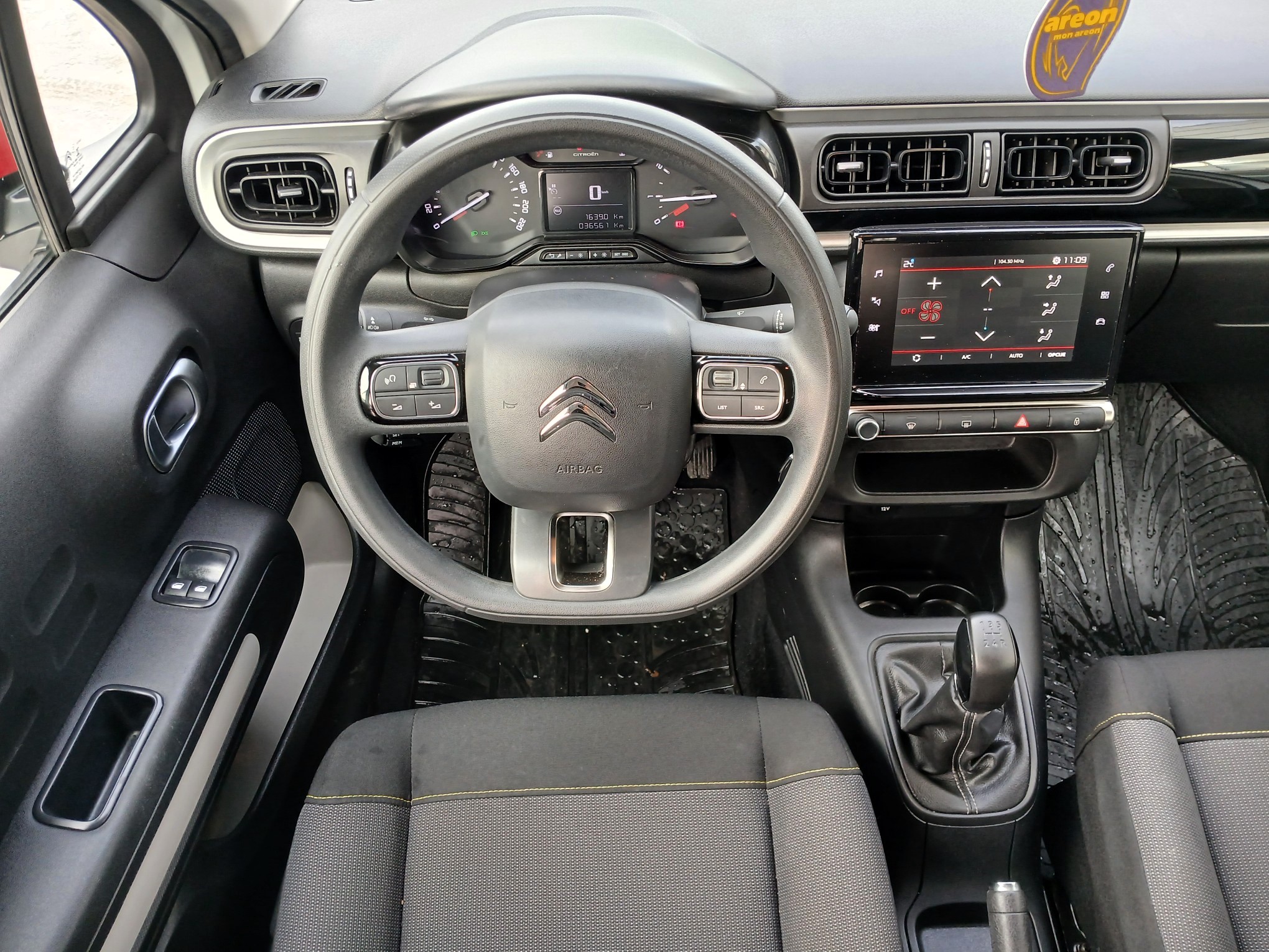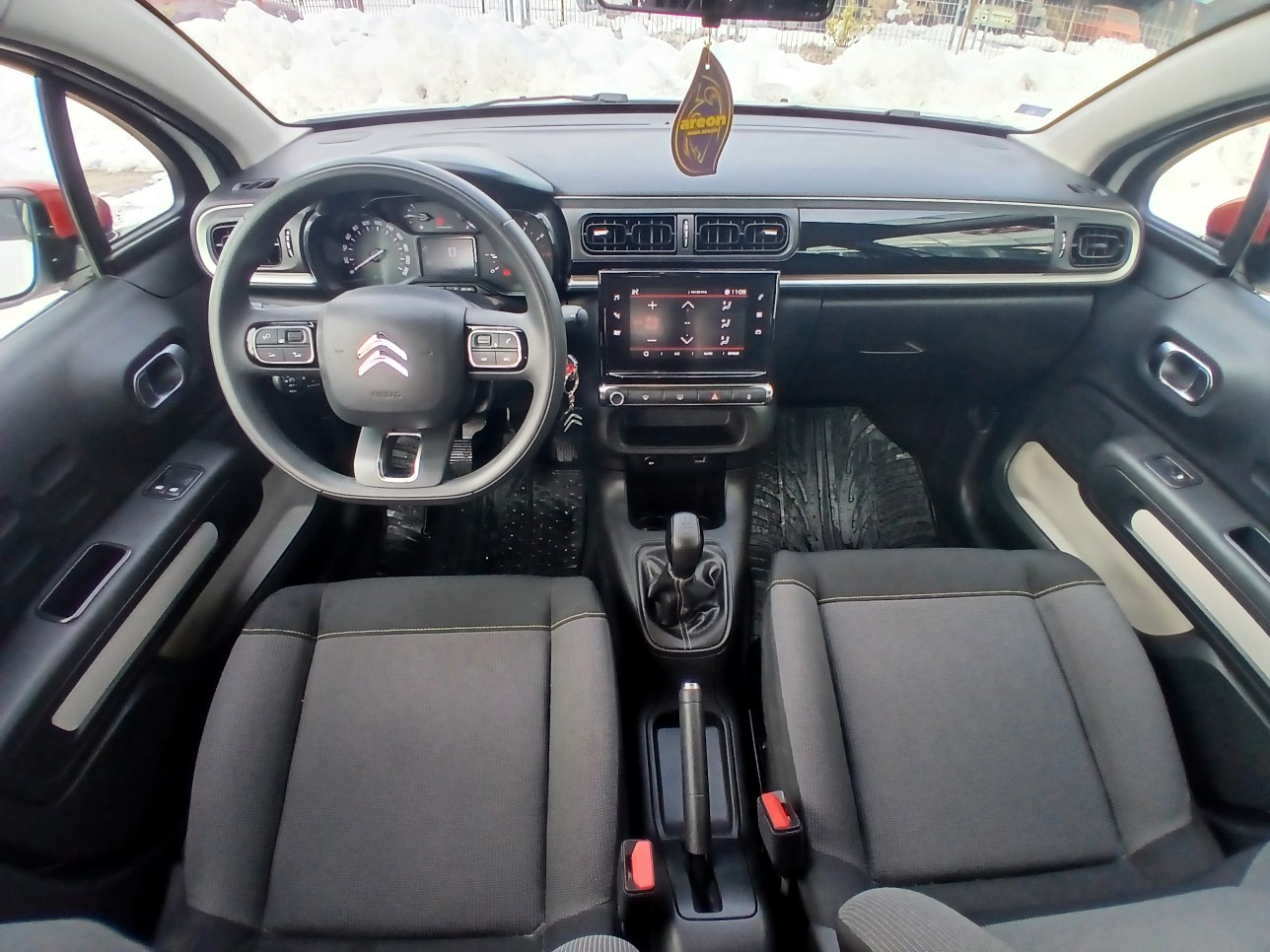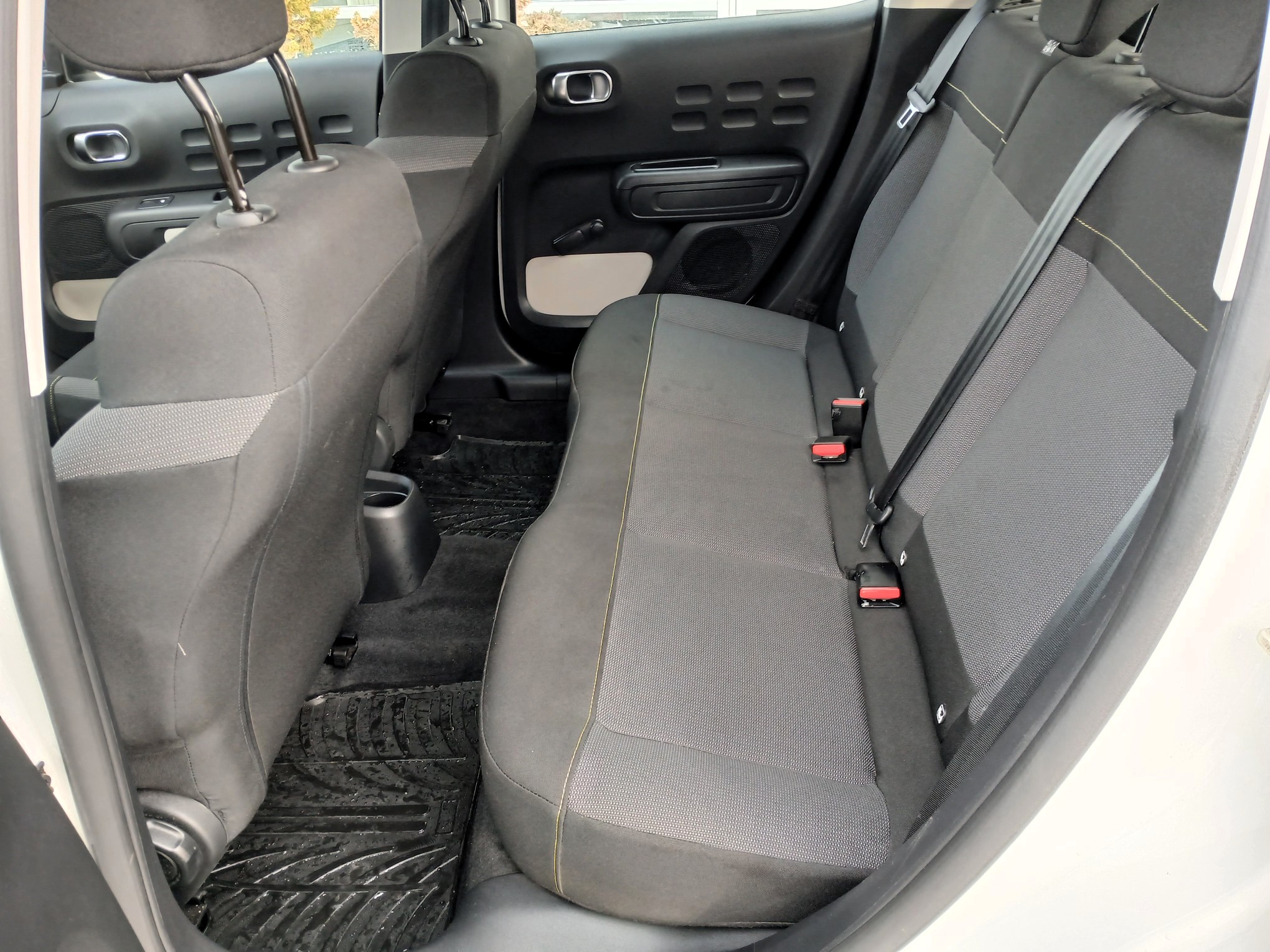 - Unutrašnjost od tkanine u sivoj boji Mica sa zeleno žutima šavovima, Armaturna ploca sa umetkom sjajne crne boje i sivom obrubom,